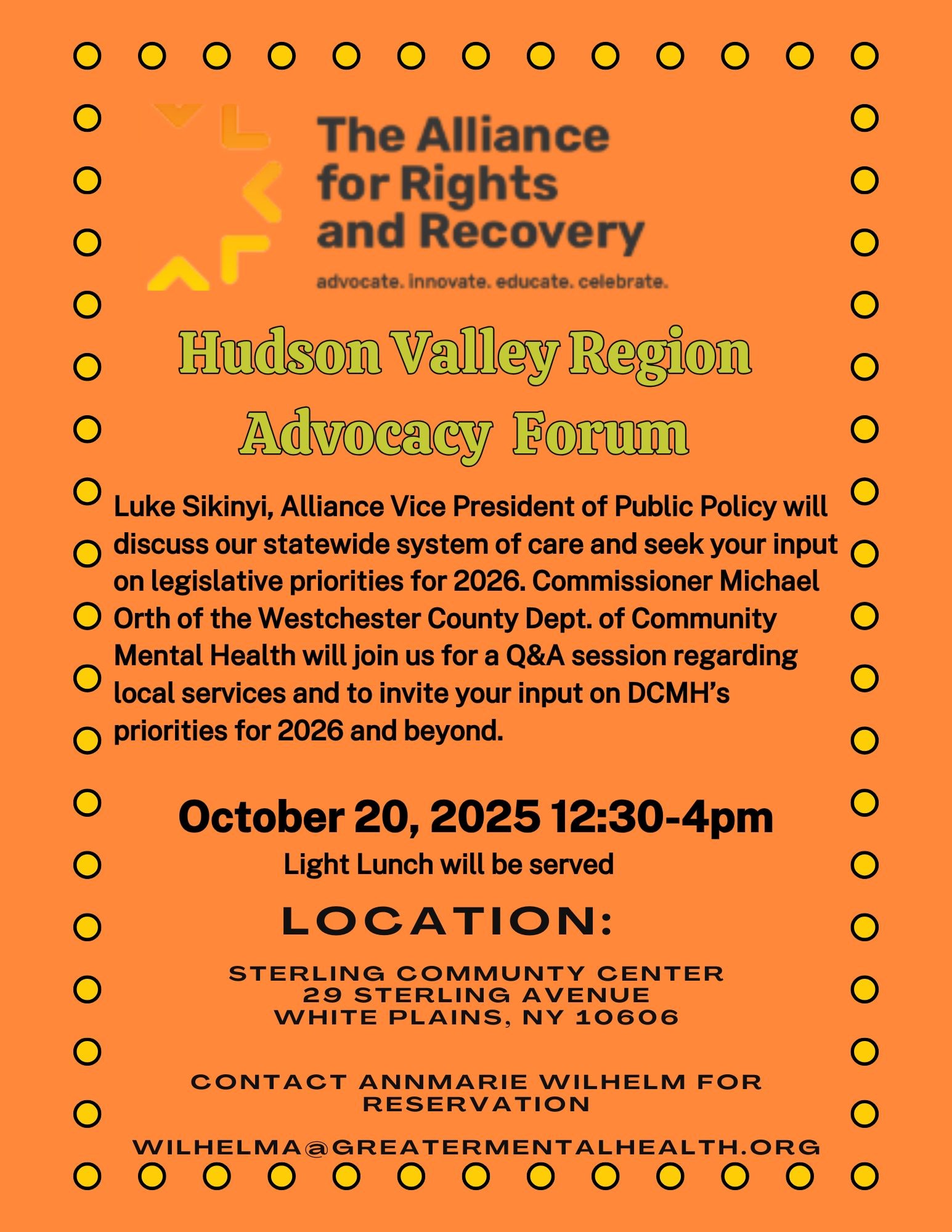 - Hudson Valley – October 20, 2025, 12:30-4:00pm