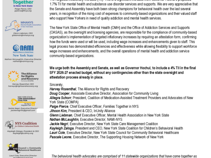 Today, the Alliance for Rights and Recovery joined advocates, providers, families, and partners from across New York State to call […]